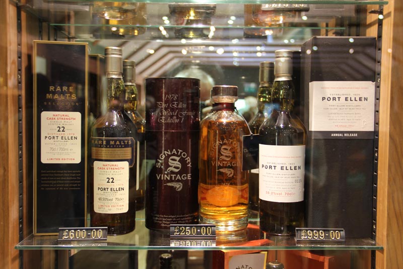 Im Shop der Edradour-Destillerie kann man einige seltene Signatory-Abfüllungen bewundern. So zum Beispiel einen Port Ellen von 1978, 22 Jahre für 600 Pfund die Flasche oder von 1979, ebenfalls 22 Jahre alt für 999 Pfund. Leider hatte ich es nicht klein. |