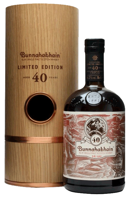 Neuheit: Bunnahabhain 40 Jahre Ca. 2000 Euro kostet dieser Islay-Whisky von Bunnahabhain. In schöner Verpackung kommt ein süßer, würziger und fruchtiger Whisky, dem Alter durchaus gerecht werdend. Der Preis ist natürlich nicht ganz ohne. Es gibt nur 750 Flaschen.