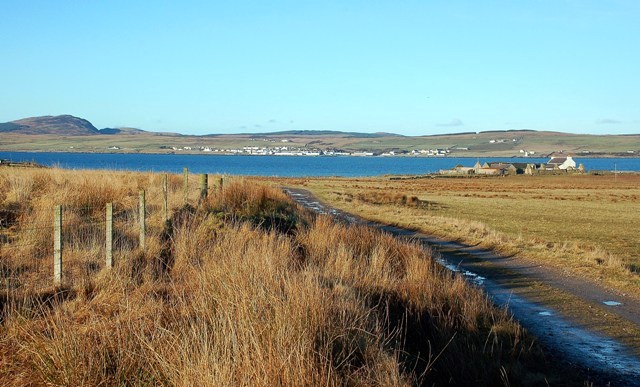 Foto: cc-Lizenz Mary and Angus Hogg / Wikimedia Commons Blick über die Gartbreck Farm und den Loch Indaal nach Bruichladdich