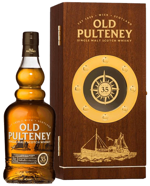 Limited Edition 35yo von Old Pulteney Nach dem 40jährigen Old Pulteney von 2012 füllt die Destillerie im Norden des schopttischen Festlands 450 Flaschen dieser 35jährigen Limited Edition ab. Gereift in Ex-Bourbon und Ex-Sherry-Fässern wird dieser Whisky mit 42,5% in die Flaschen kommen. Typisch Pulteney soll sein Geschmack sein. Blumig, süß, würzig, Honigtöne. Der Geschmack nach Rumrosinen und Orangen geht über in verwittertes Leder und ein wenig Meeresluft. In der links abgebildeten ansprechenden Holzbox wird der 35yo OP für 500 Pfund zu haben sein. Sicher nicht billig, aber dem Whisky sicher angemessen.