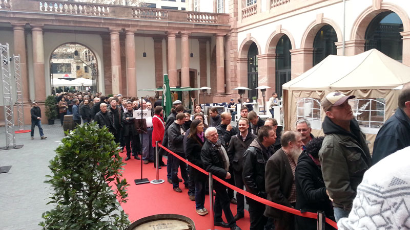 Zwischenzeitlich gingen wir im Innenbereich des Palais' etwas essen. Eine riesige Schlange wartete auf den Einlass. Um die Stimmung der Wartenden etwas zu verbessern, wurde die Jura Special Edition für den Whisky Botschafter ausgeschenkt.