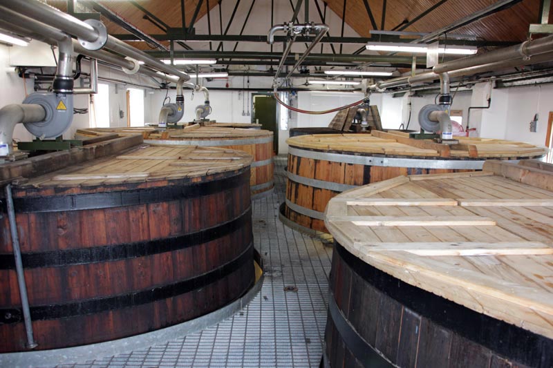In den Washbacks erfolgt der Gärprozess bei dem Zucker in Alkohol umgewandelt wird.