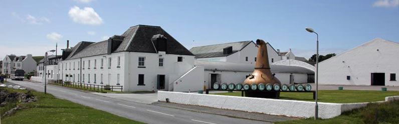 Auf dem Rückweg von Kilchoman fuhren wir bei bestem Wetter zur Bruichladdich Destillerie, die direkt am Meer, bzw. an der großen Bucht, die von Süden in die Insel geht.