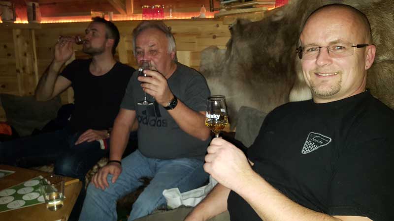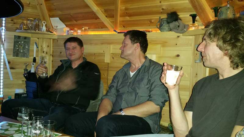 Gemütlich am warmen Feuer genossen wir unsere Whisky.