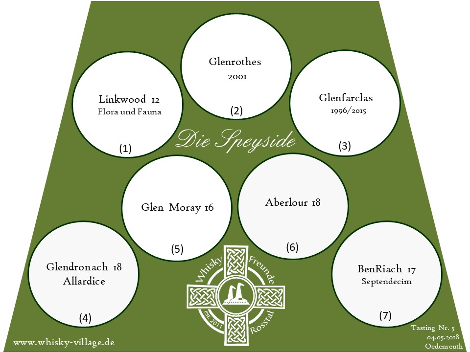 Tasting Nr. 5 Unser fünftes Tasting fand am Freitag, den 04.05.2018 um 19:00 Uhr in Oedenreuth statt. Thema: Die Speyside