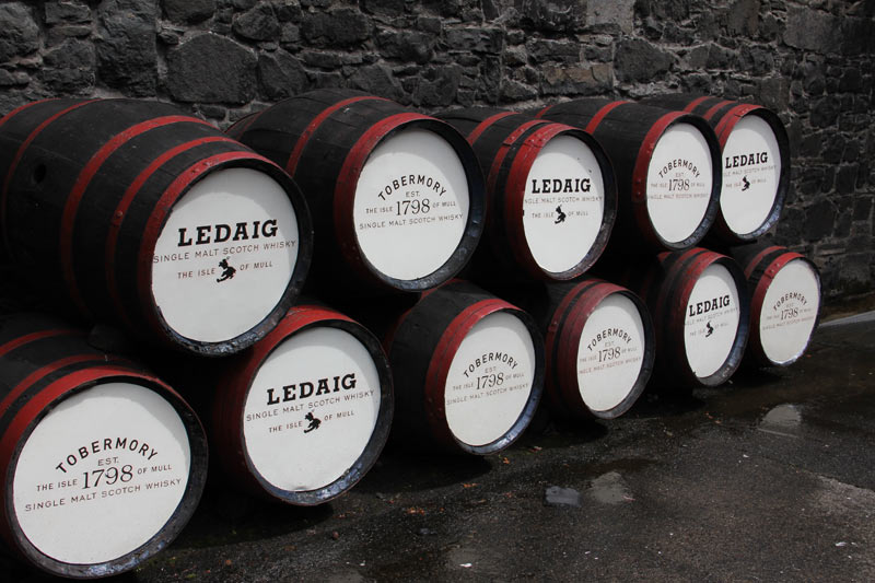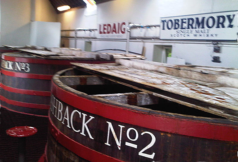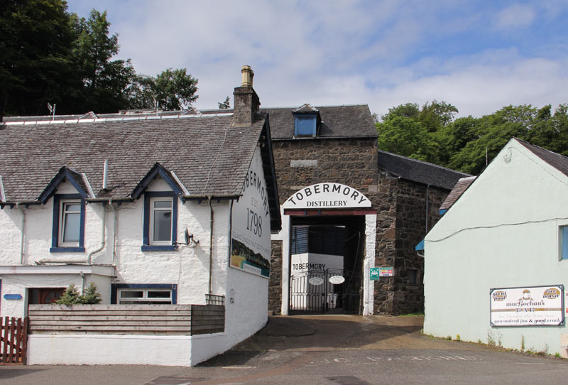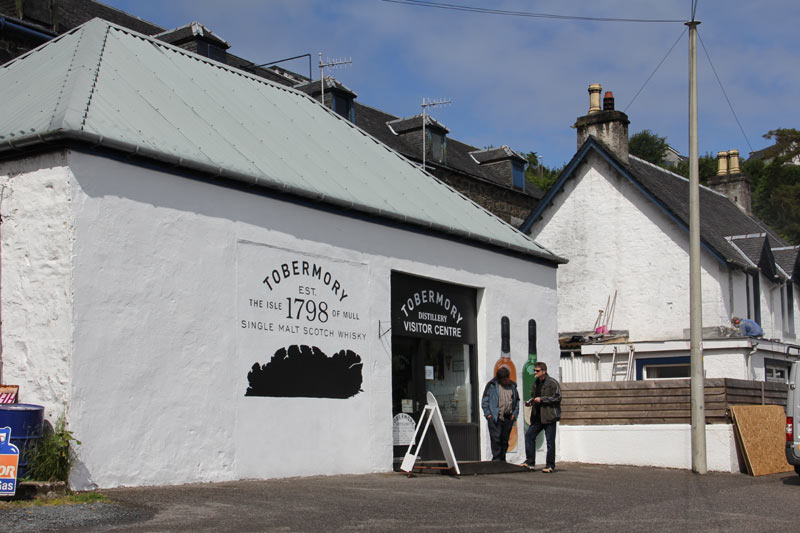 Da wir erst Karten für die Führung um 14:00 Uhr bekamen, gingen wir in einem Pub essen. Das war richtig gut und wir entgingen sogar einem Regenschauer. Jürgen kaufte sich ein Original-Bild in einer Galerie und wir bummelten die eine Ladenstraße entlang. Dann gingen wir zur Destillery Tobermory. Es waren nur ca. 10 Leute, die an der Führung teilnahmen, aber viel mehr ginge auch gar nicht, weil oftmals nicht wirklich viel Platz ist.