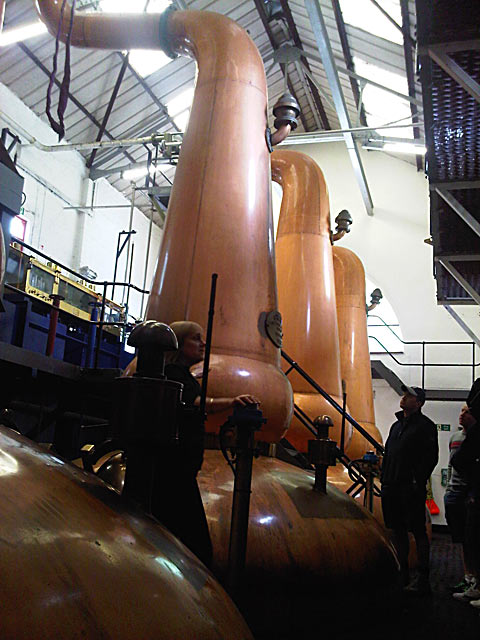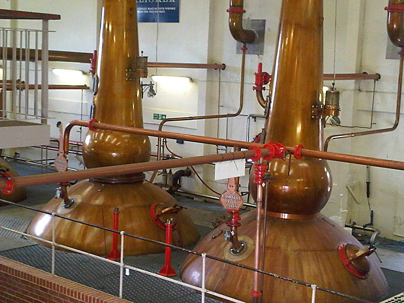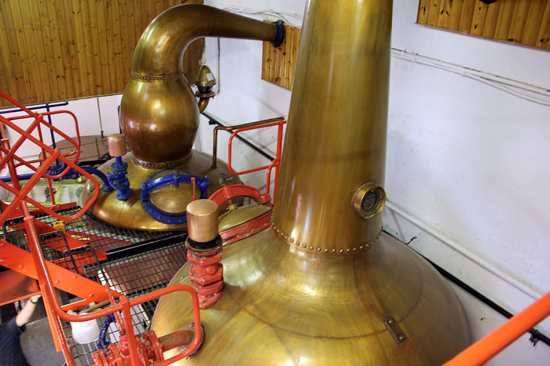 Hier ein Blick auf Spirit Still und Receiver, in dem der fertige Whisky vor der Abfüllung gesammelt wird.