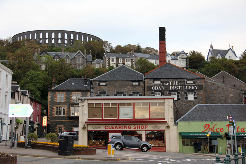 Mc Caig's Tower auf dem Battery Hill (Colosseum) Wir haben dann als Wegzehrung eine Flasche Tobermory für 24,80 Pfund gekauft. Das ging für schottische Verhältnisse.