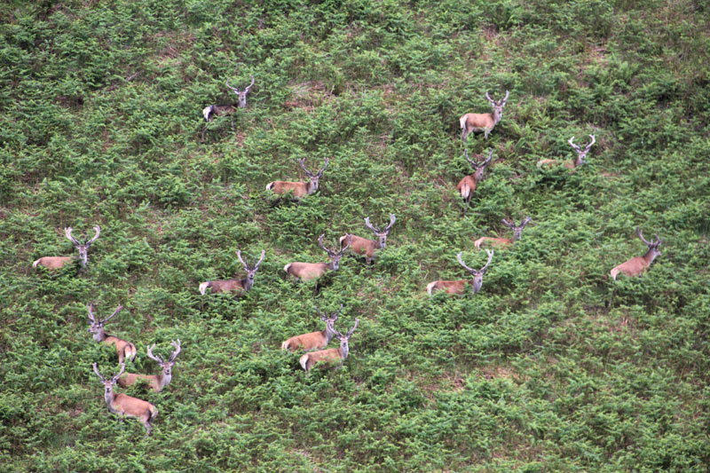 Wir wollten noch nach der Arche suchen, ohne genau zu wissen, was das ist, aber vergeblich. Dafür sahen wir auf der Rückfahrt 16 Hirsche am Hang gegenüber. Erstaunlich, dass männliche Tiere so im Rudel auftreten. Das hatten wir nicht erwartet.
