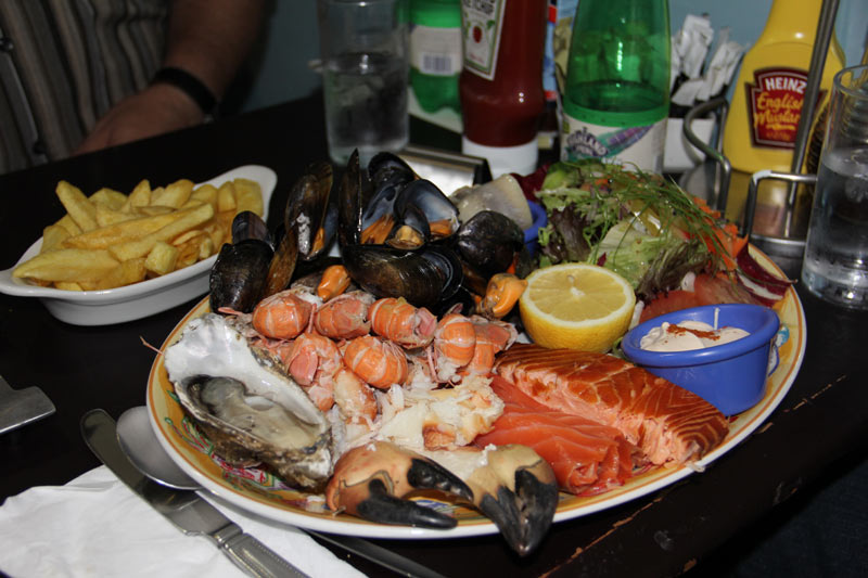 Am Abend, zurück in Oban, gingen wir in eine Fischkneipe essen - Jürgen hatte die Seefood-Platter gewählt - riesig. Auch hier schmeckte es uns gut, war halt nicht so gemütlich.