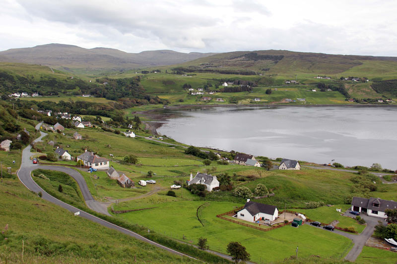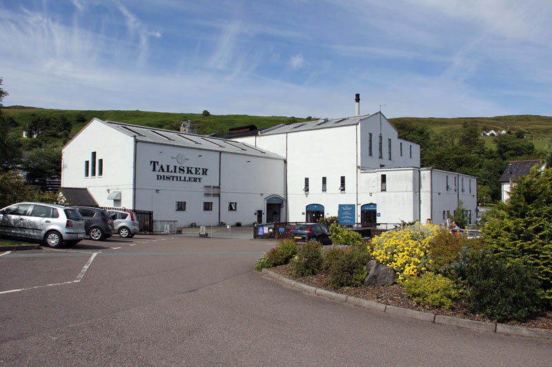 - Tag 4 - Samstag - Wir fuhren nach einem super guten Frühstück in Richtung Insel Skye. Vor der Brücke, in Kyle of Lochalsh machten wir einen Zwischenstop und gingen in einen Souvenirshop, wo wir Puffins aus Holz und Jürgen einen Scottish Terrier als Modell kauften. Dann fuhren wir nach Portree, einem schönen kleinen Küstenort auf der Insel Skye. Dort gingen wir am Hafen zu Mittag essen. War nicht schlecht, aber auch nicht umwerfend. Danach fuhren wir zur Destillerie von Talisker. Die gehört zu Diageo, der Talisker also zu den "Classic Malts". Die Führung ist mit Mikrofonen und straffem Zeitplan ziemlich unpersönlich rüber gekommen. Bei Oban und Tobermory hatte uns das besser gefallen. Als Tasting gab es hier nur einen kleinen Schluck vom 10jährigen Talisker.
