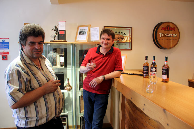 In Inverness machten wir keinen wirklichen Stopp, fuhren nur kurz an einer Tankstelle ran. Dafür hielten wir bei Tomatin - einer Destillerie, die man eigentlich besichtigen kann, nur leider nicht am Sonntag. Wir sahen uns im Shop ein Video an und konnten die Whiskys zumindest verkosten. Peter kaufte sich eine Dreier-Miniatur-Variante. Obwohl ich als Fahrer nun Minischlucke nehmen konnte, muss ich doch sagen, dass der Tomatin, den ich zuvor noch nicht getrunken hatte, gar nicht schlecht ist.