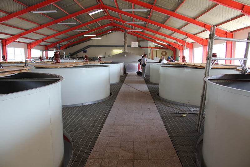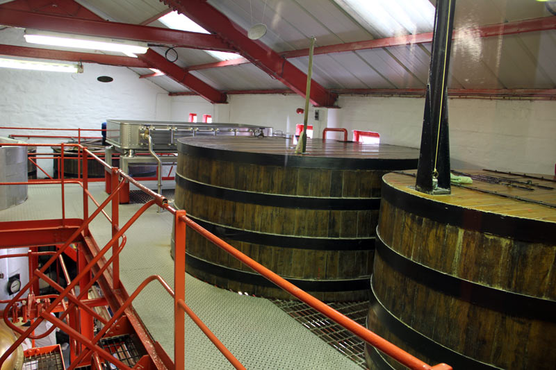 Dann fuhren wir weiter. Die nächste Station war Glenfarclas. Man fährt in der Speyside nicht allzuweit bis zur nächsten Destillerie. Bei Glenfarclas hatten wir Glück. Die Destillerie hatte Betriebsurlaub, weil es diverse Umbauten gab. Da sie daher außer Betrieb war, durften wir auch innen fotografieren.
