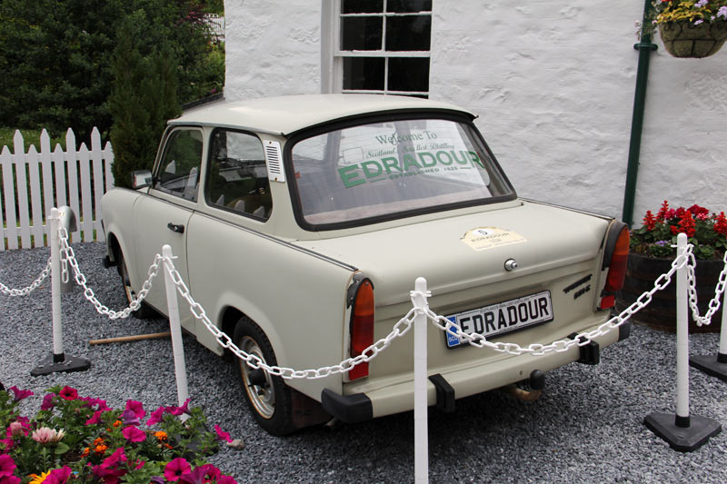 Witziger Weise steht auf dem Gelände ein Trabi, kleinste Destillerie, kleinster Auto.