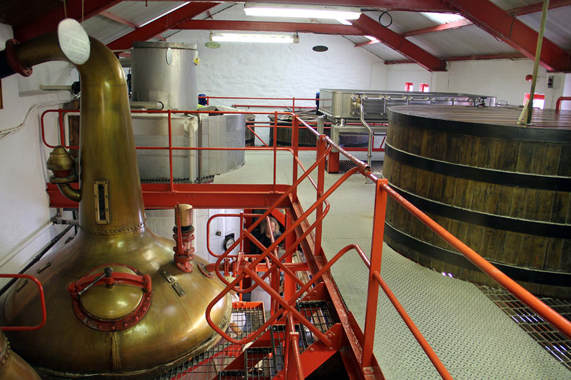 Edradour hat nur 2 Stills, eine Low Wine Still und eine Spirit Still. Insgesamt arbeiten nur 3 Personen an der Whisky-Herstellung, aber 20 im Fremdenverkehr (Shop, Tasting-House).